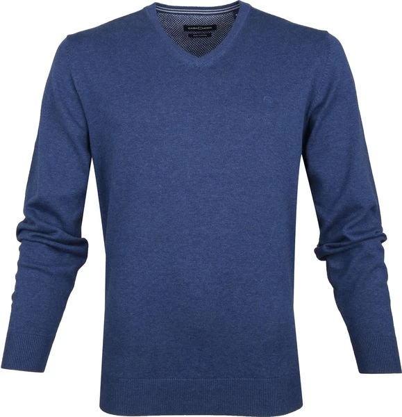 Ga voor stijlvol én comfort met deze tijdloze pullover van Casa Moda. De herentrui heeft een modische middenblauwe kleur en is afgewerkt met een V-hals en een ton sur ton geborduurd merklogo. Dit zorgt ervoor dat de pull eenvoudig te combineren is met bijvoorbeeld een chino, jeans of over een overhemd. Hierdoor loop je er dit seizoen stijlvol en verzorgd bij in deze pullover van Casa Moda.