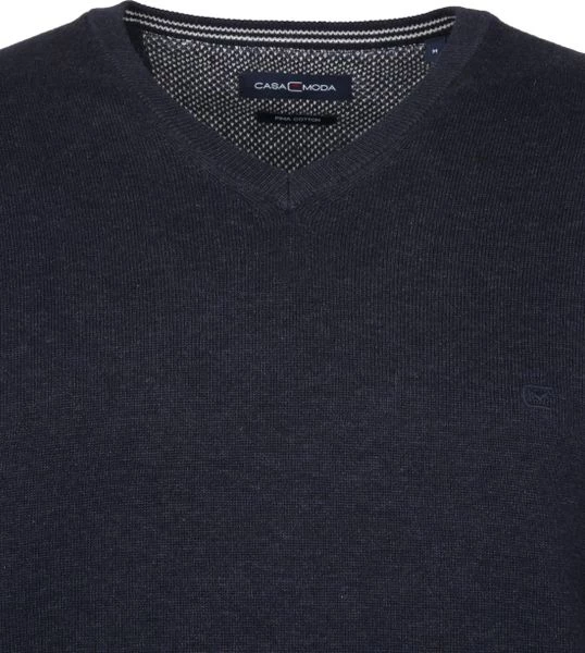 Ga voor stijlvol én comfort met deze tijdloze pullover van Casa Moda. De herentrui heeft een stijlvolle donkerblauwe kleur en is afgewerkt met een V-hals en een ton sur ton geborduurd merklogo. Dit zorgt ervoor dat de pull eenvoudig te combineren is met bijvoorbeeld een chino, jeans of over een overhemd. Hierdoor loop je er dit seizoen stijlvol en verzorgd bij in deze pullover van Casa Moda.