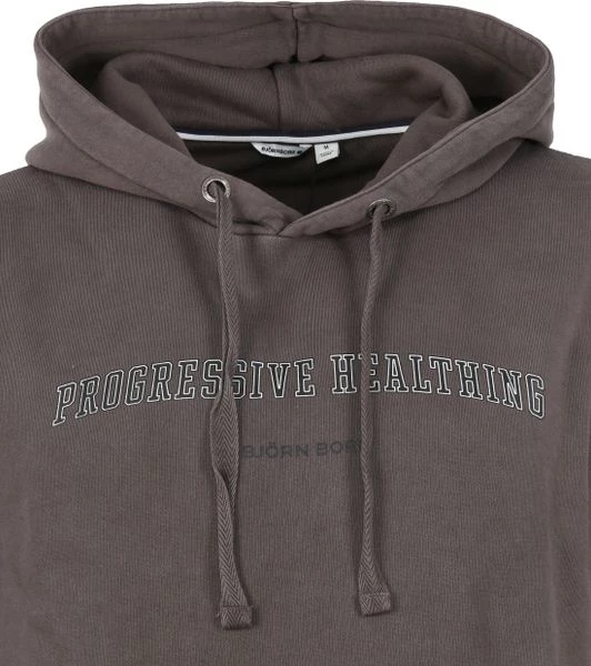 Met deze hoodie van Björn Borg krijgt je outfit een sportieve en trendy uitstraling. De sweater heeft een donkergrijze kleur en is afgewerkt met een tekst op de borst, een capuchon, een buidelzak en elastieke banden aan de uiteinden.