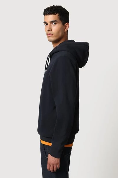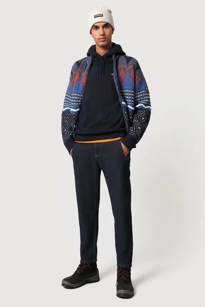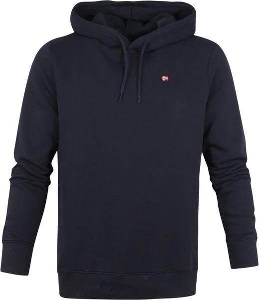 Kies voor een modieuze uitstraling en een hoog draagcomfort met deze Balis crewneck hoodie van Napapijri. De herentrui heeft een stijlvolle donkerblauwe kleur en is voorzien van een merklogo op de borst. Hierdoor krijgt de sweater met capuchon een moderne uitstraling en voorziet deze jouw outfit van een trendy touch.