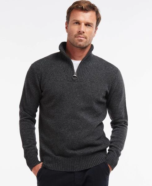 De stijlvolle trui heeft een tijdloze donkergrijze ‘Antraciet’ kleur en is voorzien van een gemêleerd ‘Donegal’ dessin, wat voor een moderne, casual touch zorgt. Daarnaast is de zipper trui voorzien van een ton sur ton geborduurd merklogo en een opstaande kraag die met een ritssluiting dicht te maken is. De comfortabele Regular-Fit pasvorm valt recht langs je bovenlichaam en zorgt zo voor voldoende bewegingsvrijheid en maakt de Barbour trui tevens geschikt om te dragen over bijvoorbeeld een overhemd of T-shirt.