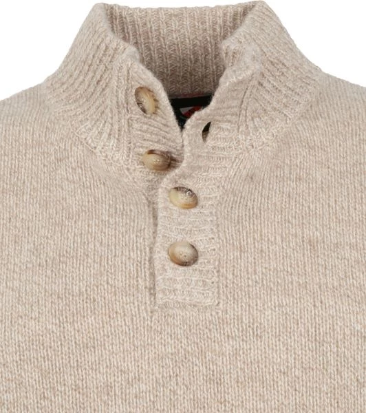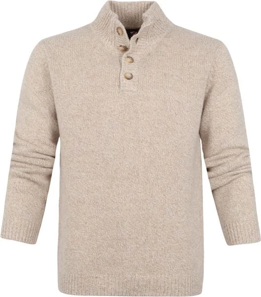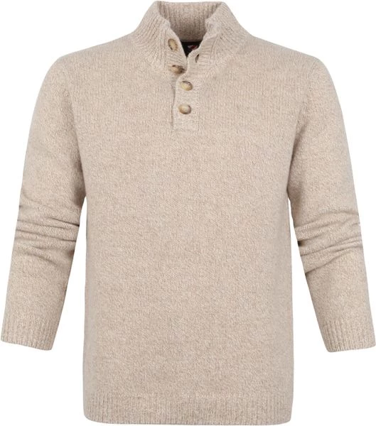 Met deze Pullover van Suitable combineer je een stijlvolle uitstraling met een hoog draagcomfort. Het herenvest heeft een trendy beige kleur en is afgewerkt met een subtiel melange en een mocker hals met bijpassende knoopsluiting, waardoor het vest een moderne touch krijgt. Verder is de trui voorzien van een opstaande kraag en rib gebreide zoom.