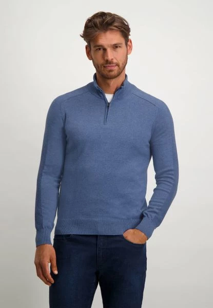 State Of Art geeft je een stijlvolle look door de combinatie van tijdloze elegantie en actuele trends. Met deze halfzip trui haal je een moderne herentrui in huis. De herentrui heeft een Modern-Fit pasvorm en valt licht getailleerd om het bovenlichaam. Combineer de trui op een chino voor een klassieke uitstraling.
