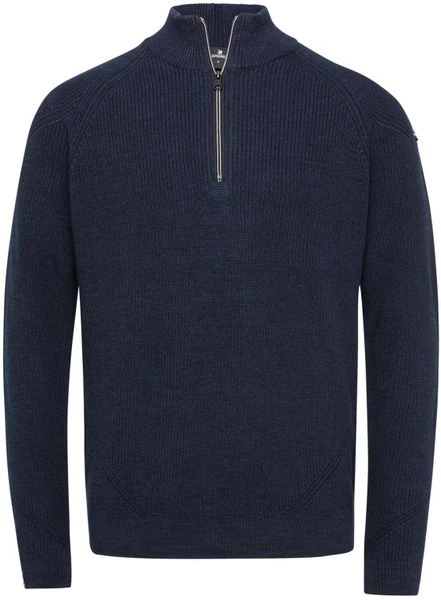 De herenkleding van Vanguard staat bekend om haar goede kwaliteit en moderne ontwerpen met stoere details. Deze herentrui heeft een licht getailleerde modern-fit pasvorm en is afgewerkt met een halve rits, een patch op de arm en een gebreide structuur.