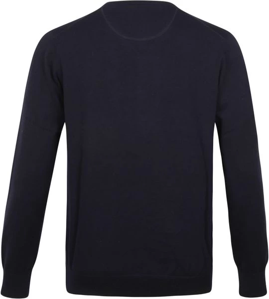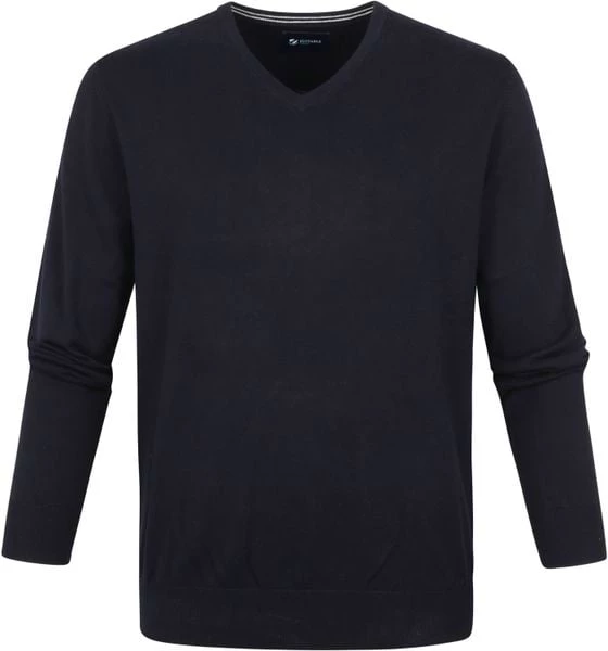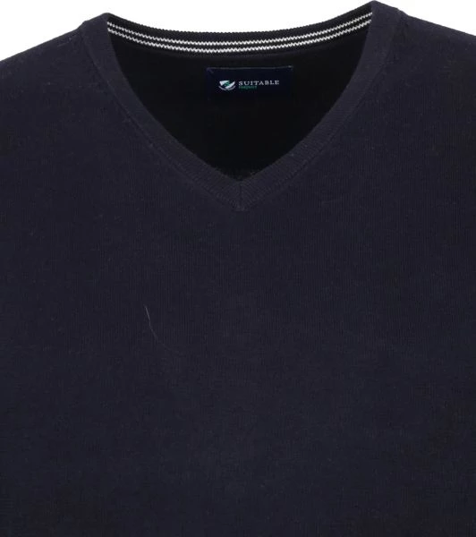Met deze Vini pullover van Suitable haal je een stijlvolle trui met een casual twist in huis. De herentrui uit de Suitable Respect collectie heeft een modieuze donkerblauwe ‘Navy’ kleur gebonden in een moderne herringbone binding en is voorzien van een gemêleerd dessin, elastische banden aan de onderzijde en de mouwen en een V-hals. Combineer de pull met een stijlvol colbert voor een geklede look of draag het model op een jeans of chino voor een casual touch. Een trui voor elk moment!