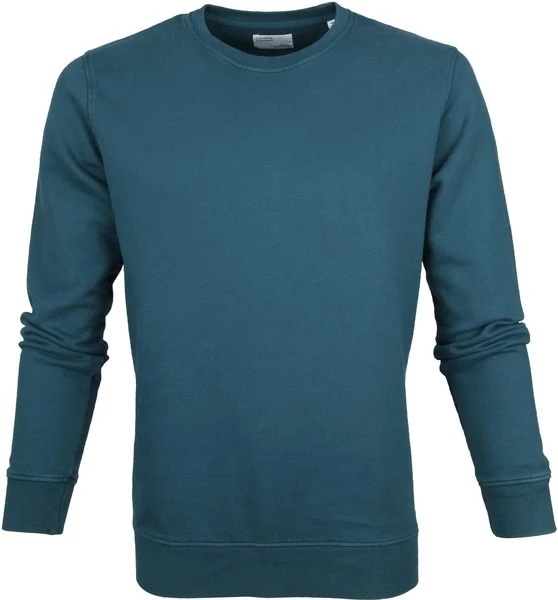 Het Scandinavische merk Colorful Standard onderscheid zich in het maken van duurzame basics in talloze trendy kleuren. Deze herentrui heeft een neutrale maar ook zeker stijlvolle donkergroene ‘Ocean Green’ kleur en is voorzien van een ronde hals (crew-neck) en elastische banden aan de uiteinden van de mouw en onderzijde van de pullover.