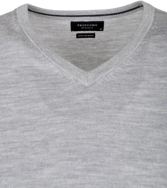 Een grijze trui met v-hals is een perfecte basic voor in jouw collectie. Deze Profuomo trui is gemaakt van 100% Merino Wol. Deze zeer comfortabele pull houdt je heerlijk warm maar voelt toch aangenaam licht tijdens het dragen.De basic kleur is makkelijk te combineren met andere items in jouw kledingkast.