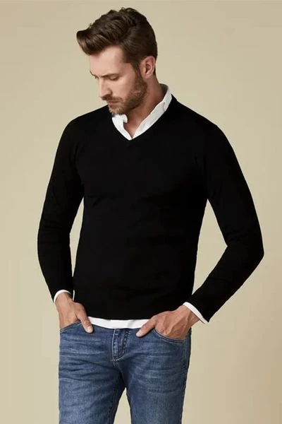 De zwarte Profuomo trui met v-hals is een perfecte basic voor in uw collectie. Deze trui is gemaakt van 100% Merino Wol en door zijn neutrale kleur makkelijk te combineren!