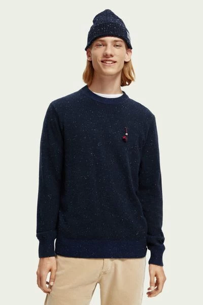 Deze pullover van Scotch en Soda is rijk aan details en van uitstekende kwaliteit. De herenpull heeft een Regular-Fit pasvorm die normaal om je lichaam valt en je zo voorziet van zowel een verzorgde look als voldoende bewegingsruimte. Daarnaast heeft de trui een gespikkeld dessin en is voorzien van een versiering op de borst. Doordat de trui deels gemaakt is van wol, is de trui zelfreinigend en temperatuurregulerend.