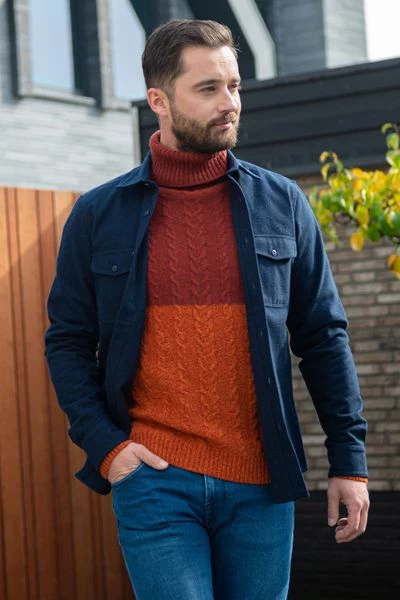 Kom stijlvol voor de dag met deze Itacol pull van Suitable. De herentrui bestaat uit een mix van twee oranje tinten die horizontaal gescheiden worden van elkaar. In combinatie met het fijne gebreide structuur, krijgt de Itacol een opvallende trendy uitstraling. De colkraag en elastische zoom op mouwen maken de coltrui helemaal af. Combineer de pull met een stijlvol colbert voor een geklede look of draag het model op een jeans of chino voor een casual touch.